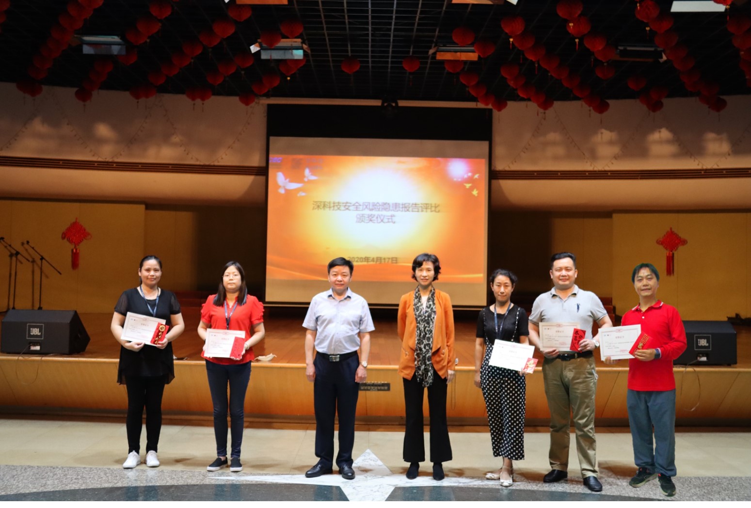 制度發布后,深科技員工踴躍參加,共提交隱患報告78項。經風控合規管理委員會與安全管理委員會評估,從安全隱患發生可能性、后果嚴重性等方面進行綜合審核,決定對其中62項報告進行分級獎勵。在總部頒獎大會上,曹岷為五名彩田園區獲獎者頒獎。劉春林、姜喬獲得一等獎,姜喬、毛靜獲得二等獎,易喜獲得三等獎,趙光勇獲得四等獎。