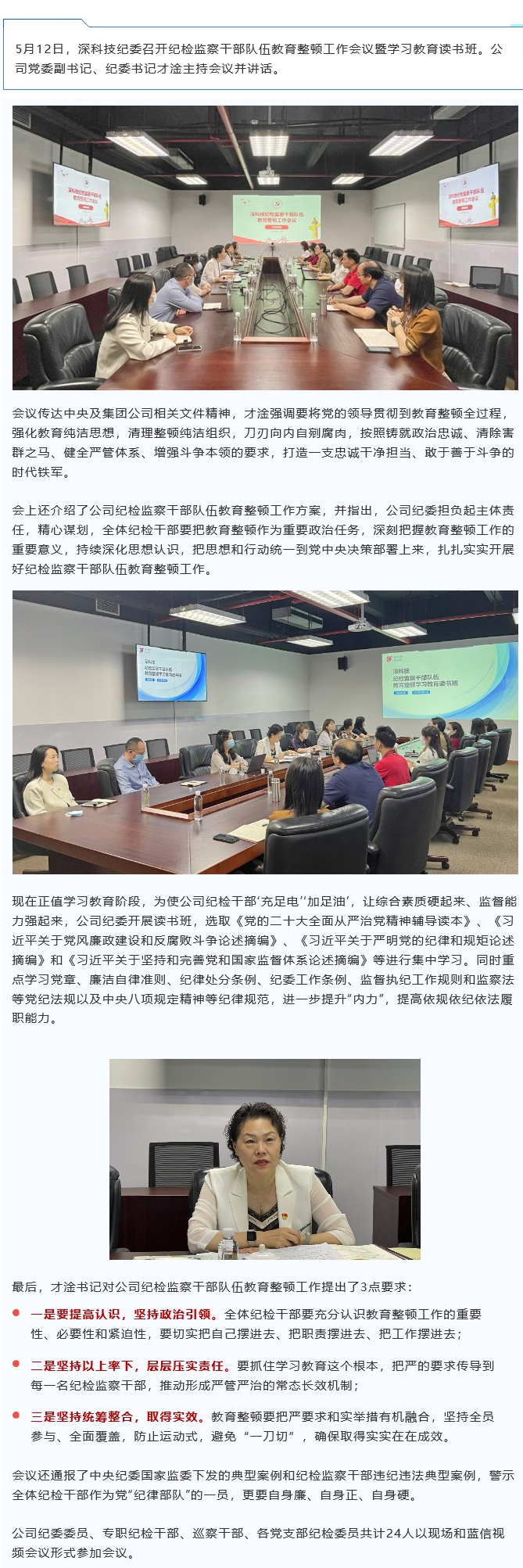 深科技紀委召開紀檢監察干部隊伍教育整頓工作會議暨學習教育讀書班