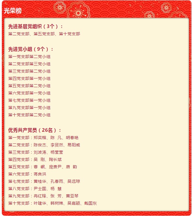 活動中,對在2017-2018年度黨建工作中成績優(yōu)異的3個基層黨組織,9個先進(jìn)黨小組以及26名優(yōu)秀共產(chǎn)黨員進(jìn)行了表彰。